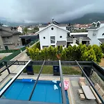 A Fethiye városi villa ablakaiból kilátást nyújt a medencére. A Fethiye városi ingatlan egy külön WC-vel felszerelt fürdőszobával rendelkezik.